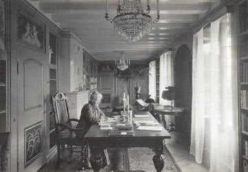 Här sitter Selma Lagerlöf och skriver. Ergonomin … musarmen … ryggskottet … arbetsljuset … Tekoppen, var är tekoppen?