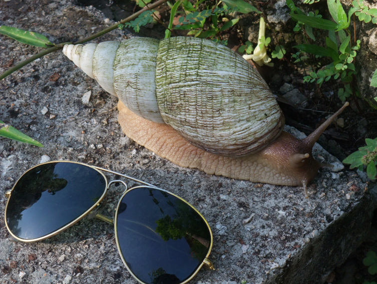När det gäller sniglar vill jag inte undanhålla er den här sötnosen. Den täcker lätt båda ögonen på en TV-licensskolkare, om det skulle bli aktuellt igen. Den härstammar dock vare sig från Skottland eller Sverige utan från Zanzibar.