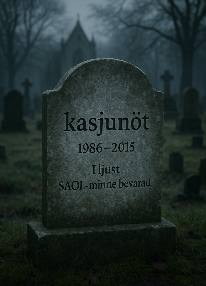 Nu lyckades jag (av outgrundlig anledning) faktiskt skapa en AI-gravsten med korrekt kasjunötstext. Trägen vinner! (Se bild.)