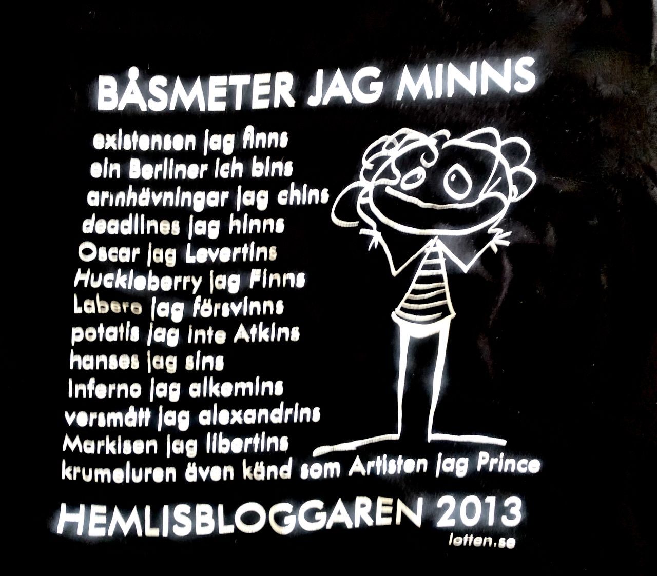 Kommentatösen som nämns i blogginlägget var vid tillfället iförd sin favoritkalendertisha, med favoritversmåttet båsmått på. Det används alldeles för sällan tycker hon/jag.