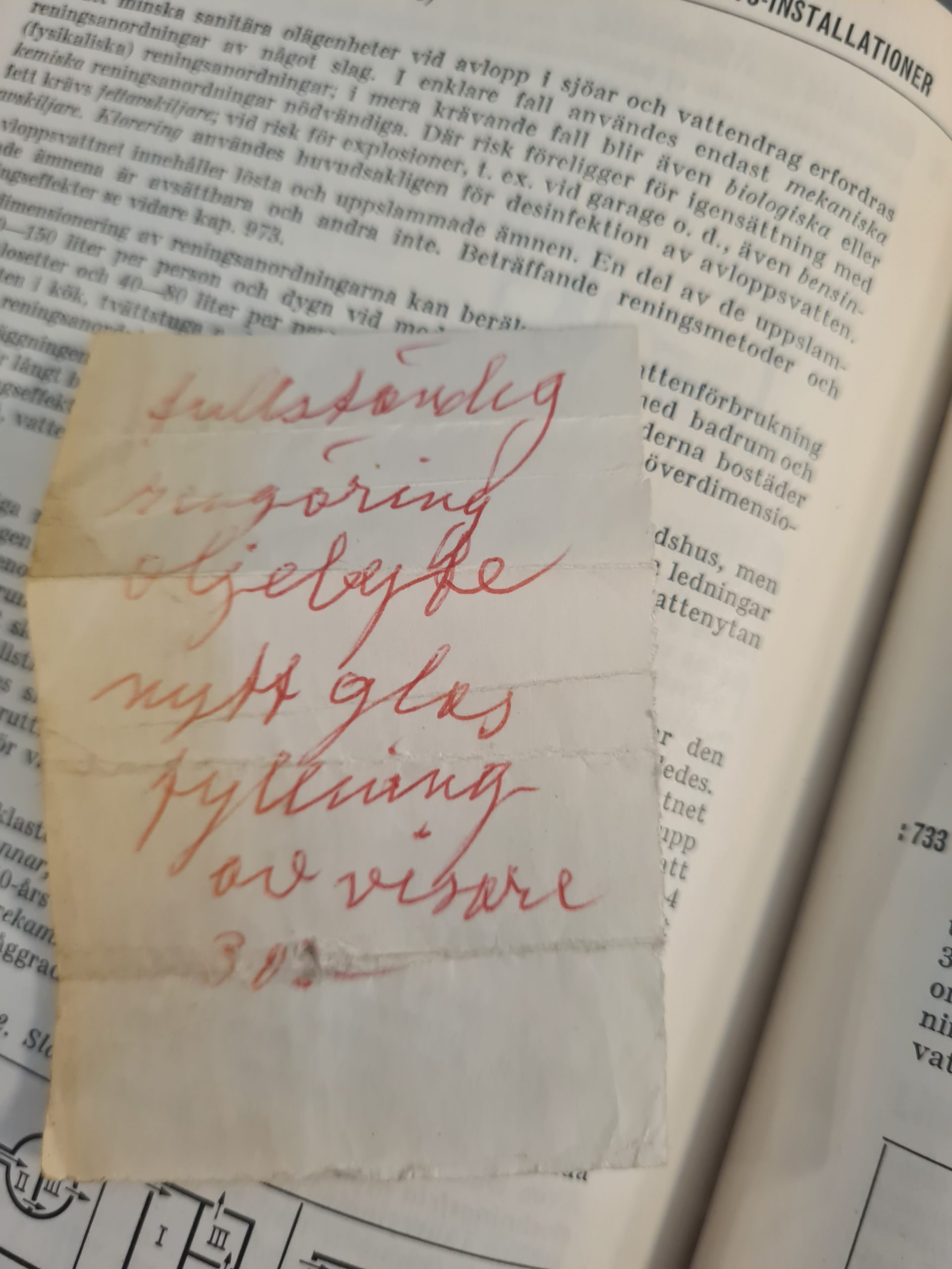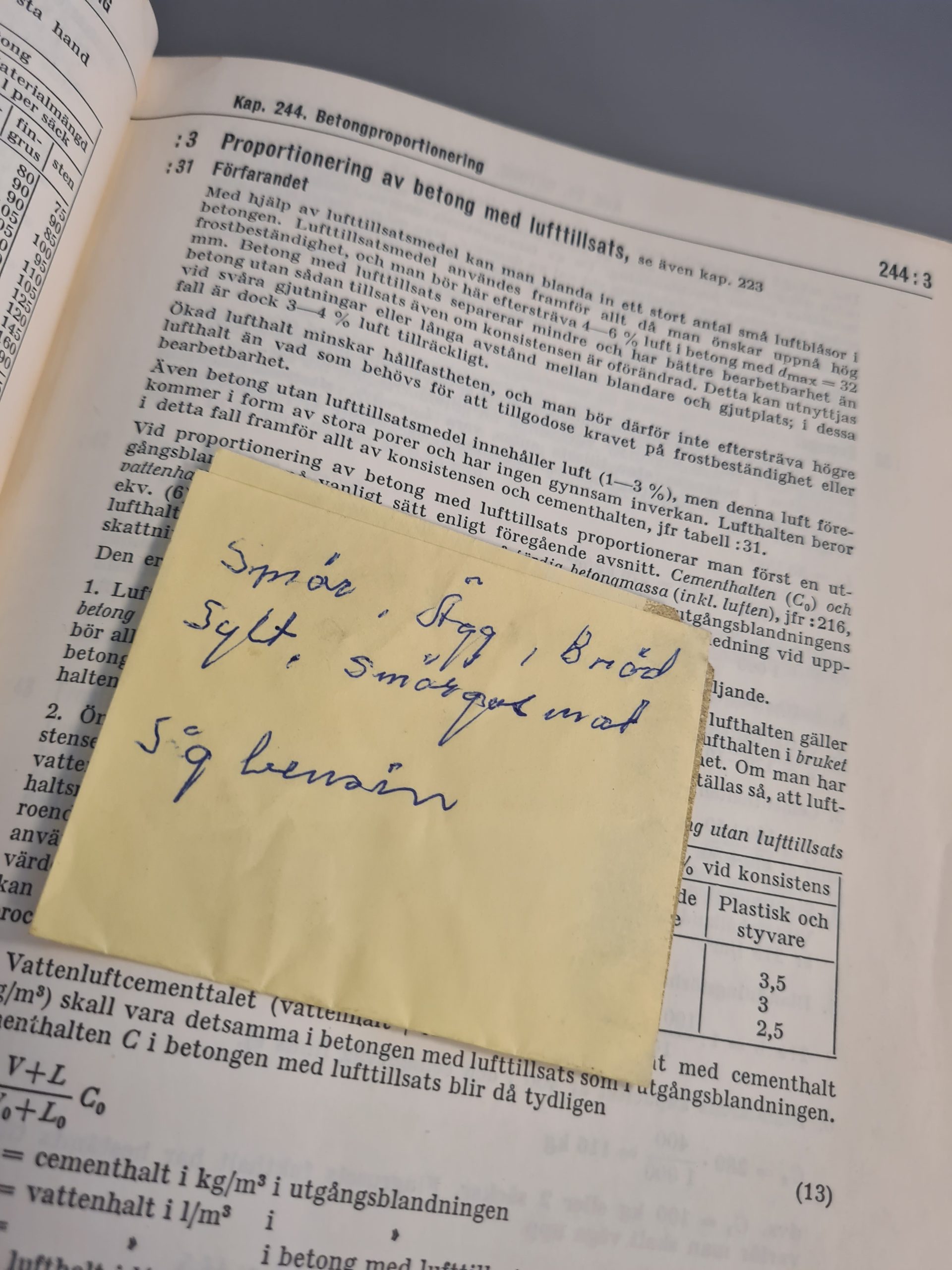 I ett gammalt fint praktverk jag köpt (Handboken bygg i 6 band från 1961) har jag, hittills, hittat två fina lappar.