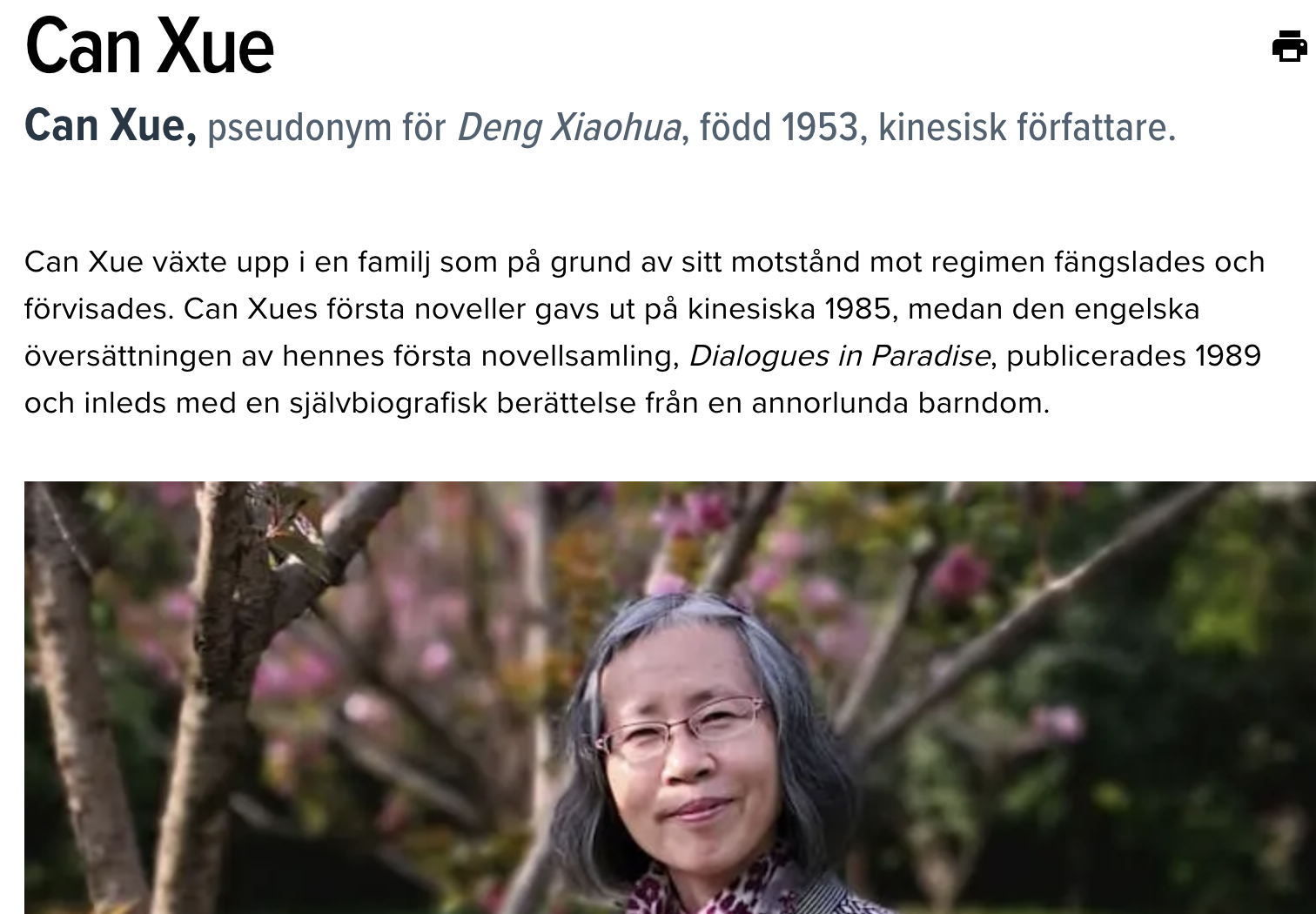 Åh fan. Michel Houellebecq igen. Och Thomas Pynchon. Ja, de grabbarna känner jag ju till. Och Can Xue har minsann artikel i NE.Nu kom Mats Malm ut!