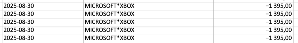 Mystifikationen – fem köp av XBOX – skedde den 30 augusti, men bokfördes inte förrän 1 september, så jag såg det inte när jag fixade momsredovisningen för augusti.