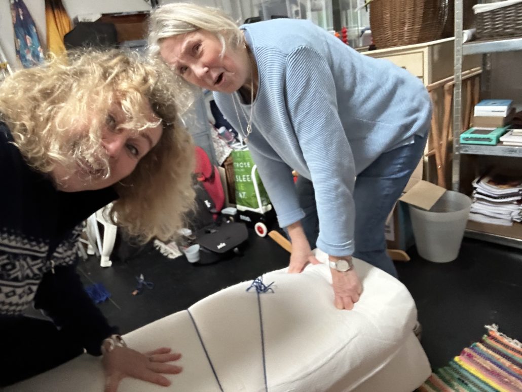 När jag och mina stora muskler är på besök, har Ann alltid några roliga uppdrag som inte kräver liljevita frökenhänder utan flyttgubbe-krafter. Denna gång besegrade vi en tempurmadrass som skulle rullas ihop, men trilskades som en treåring som inte vill ha på sig overall.