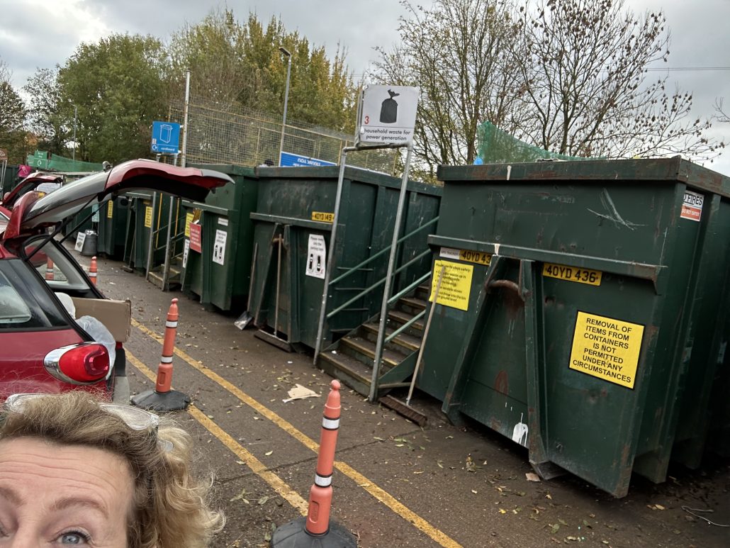 Återvinningsstationen i trakten är mer en soptipp än Retuna i Eskilstuna. Ann och jag har varit här förut, och jag försöker alltid dokumentera det som slängs och i största allmänhet ta bilder av den fascinerande miljön. Men blir strängeligen tillsagd att det är förbjudet.