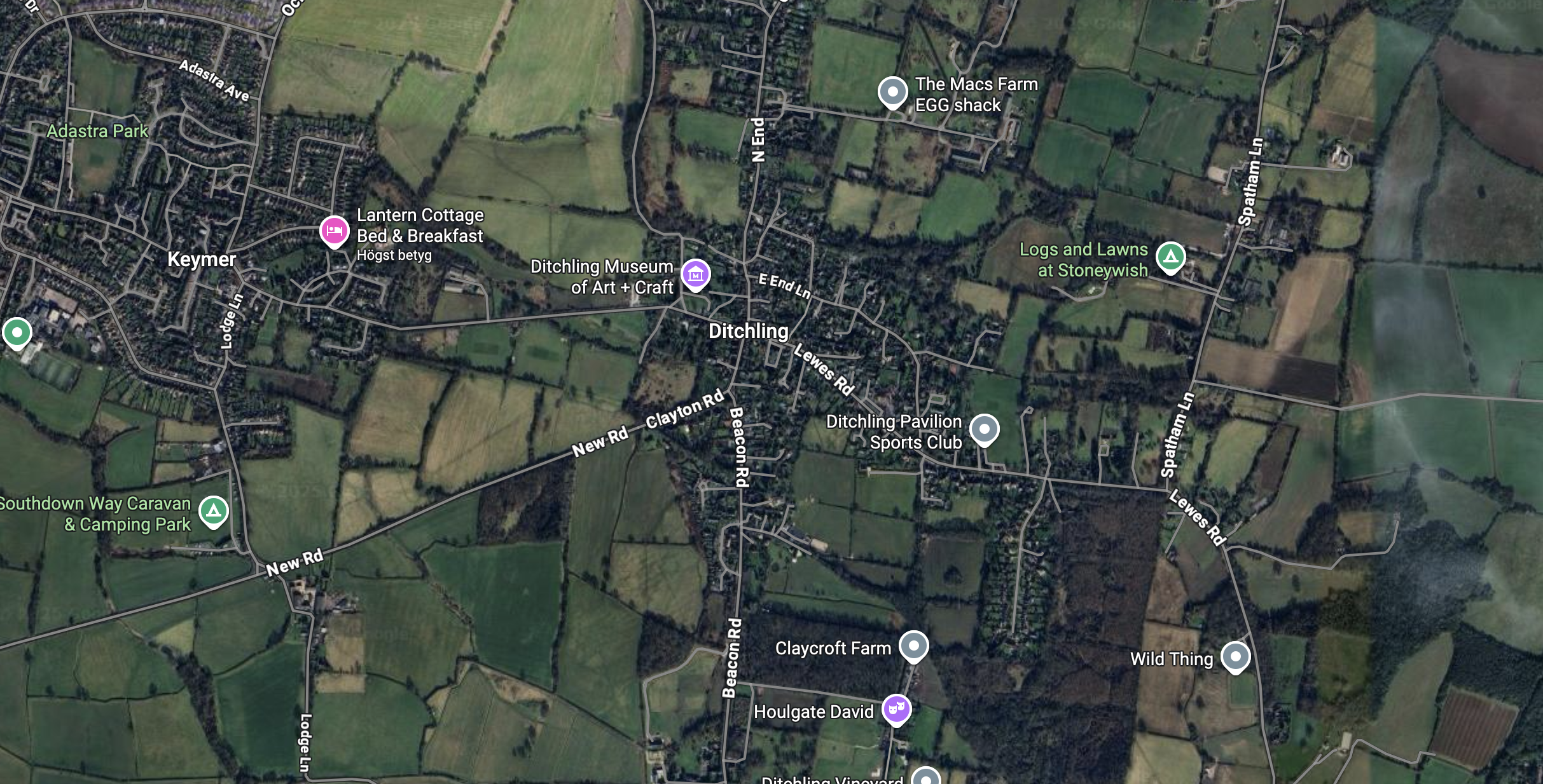 Nu är jag hos min kusin Ann i Ditchling, dit man reser via