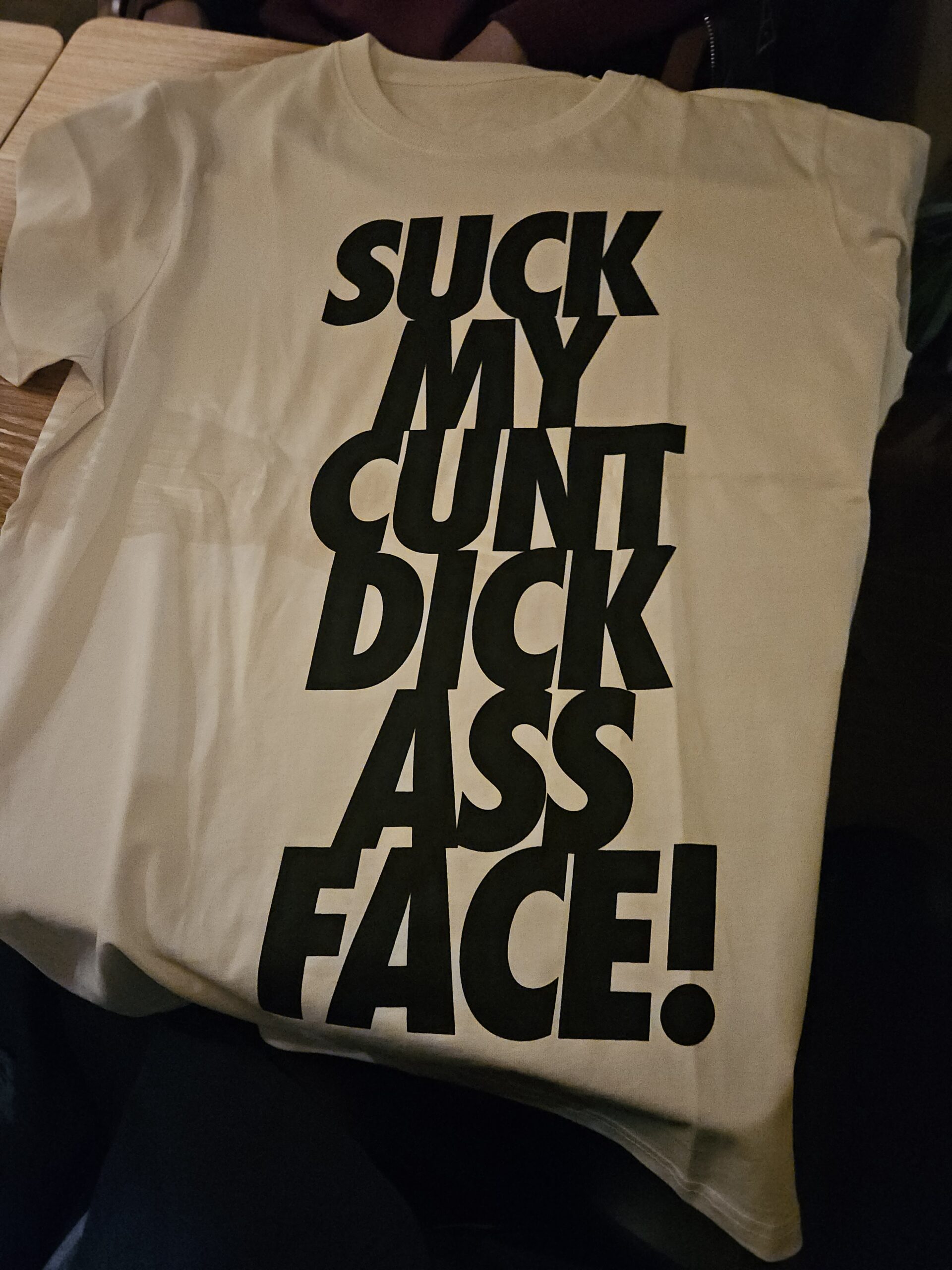 Jag vet inte om jag törs visa min oförskämda tischa för den är så oförskämd. Men nu gör jag det ändå. Varning för fula ord!