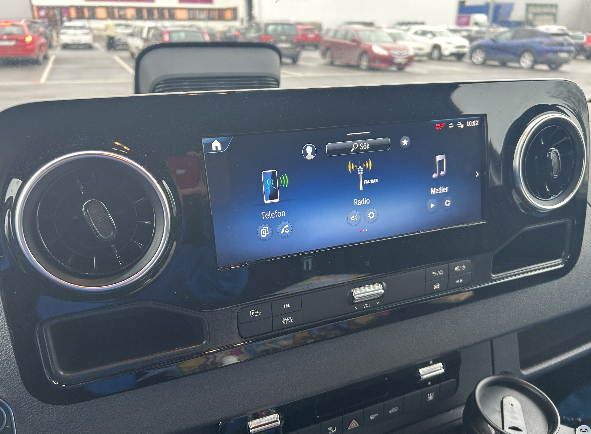 Efter en timme kände jag mig så bekväm med alla reglage, att jag ville sätta på radion. Vilket var komplett omöjligt! Dutt, dutt, duttade jag på skärmen. Inget hände. DUTT DUTT DUTT! Inget hände. Sånt ska man inte hålla på med i 100 km/h, så jag stannade och tog en bild på displayen för att googla instruktioner.