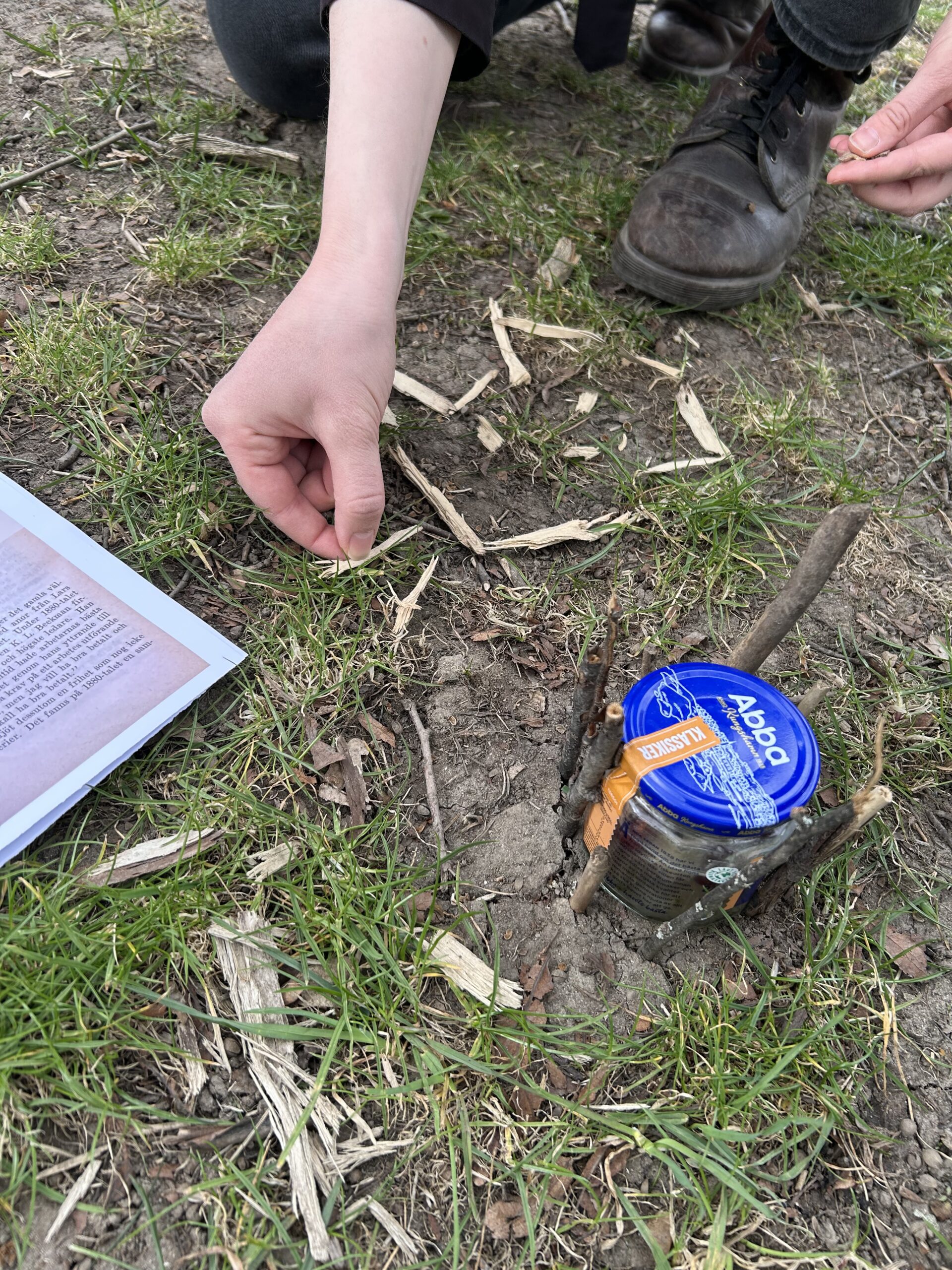 Karin hade förberett med kopior av den text som för 130 år sedan lästes över lilla Rosa och jag hade med mig en påskasillburk som jag stal ur Orangeluvans kylskåp.
