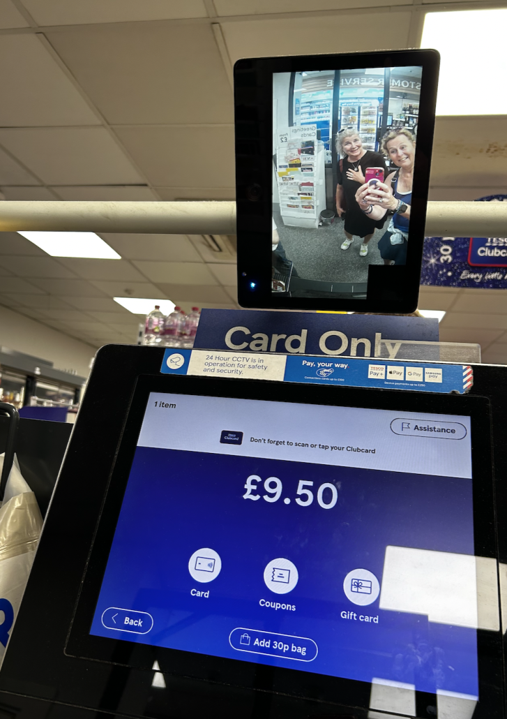 Man vill ju bara äta upp denna port!I en liten butik köpte vi en flaska vin, och konstaterade att vi blev övervakade i en ovanligt smickrande liten tv-bild.