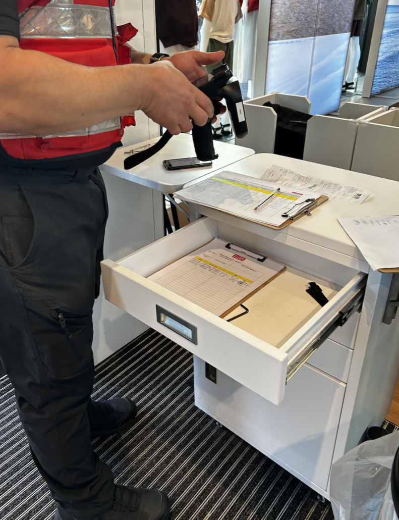Sedan kontrollerade vakten kvittot, skrev upp mitt namn, klockslag, nationalitet och brallornas pris. Han rynkade pannan och bad mig förklara, vilket jag gjorde samtidigt som jag svettades som en tok och jag förmodligen var knallröd om öronen.