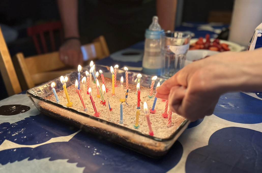 Barnbarnen M & F var de enda som inte blev sjuka. Förmodligen för att de båda två lekte läkare på studsmattan hela dagarna.Trettioettåringen och spanjoren fyllde trots alla sjukor 31, och fick 31 ljus på tårtan.Hallen var så härligt full av skor och barnvagnar.