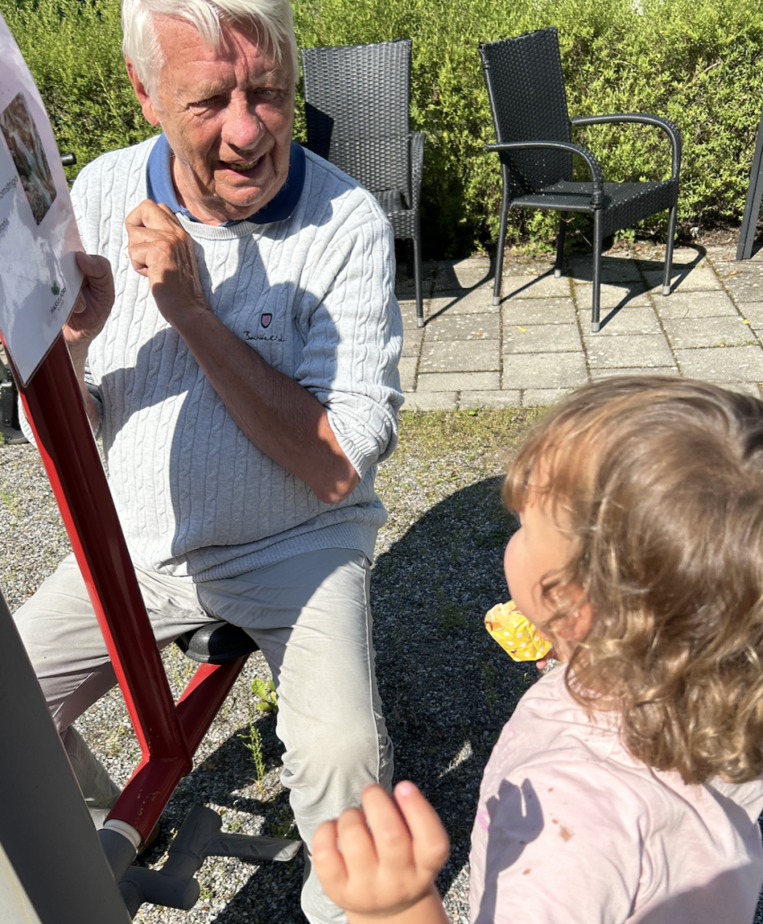 Han pratar glatt med barnbarnsbarnen och bjuder alltid på glass.