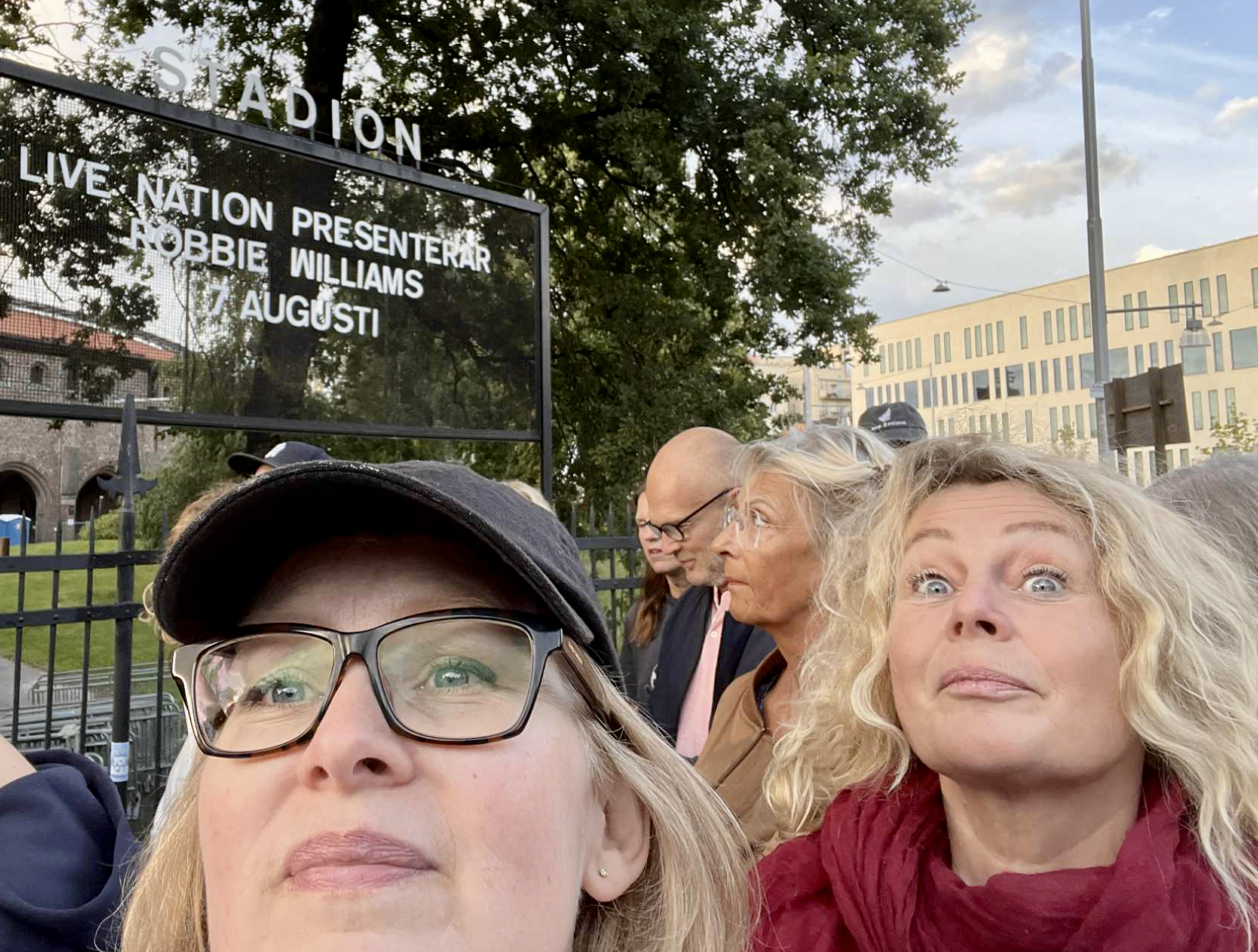 Sedan åkte jag med Orangeluvan och såg på Robbie Williams på Stadion. Här står vi före konserten: